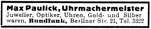 Heute fängt hier die Gesundheitswoche an, es sind viel Veranstaltungen getroffen, auch werden viel wissenschaftliche Vorträge und bildliche Vorführungen von Ärzten stattfinden. Die Moebische Drogerie ist wieder in andere Hände übergegangen und zwar an einen Herrn Fetzer aus Züllichau.